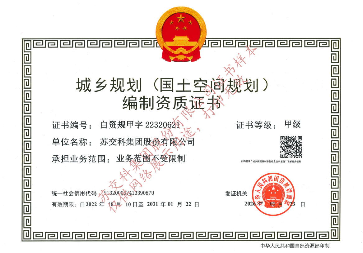 蘇交科擁有工程行業各領域甲級資質,包括城鄉規劃甲級資質;工程咨詢綜合甲級資質;工程咨詢專業甲級資質(公路、生態建設和環境工程、水文地質、工程測量、巖土工程、城市規劃、鐵路、城市軌道交通、港口河海工程、市政公用工程(市政交通、給排水)、水利工程、旅游工程);工程設計綜合甲級資質;工程勘察綜合類甲級資質;測繪甲級資質;公路工程和市政公用工程總承包一級資質;公路工程、水運工程、市政公用工程監理甲級資質;公路工程甲級、公路工程交通工程專項、水運工程材料甲級和水運工程結構甲級試驗檢測資質。